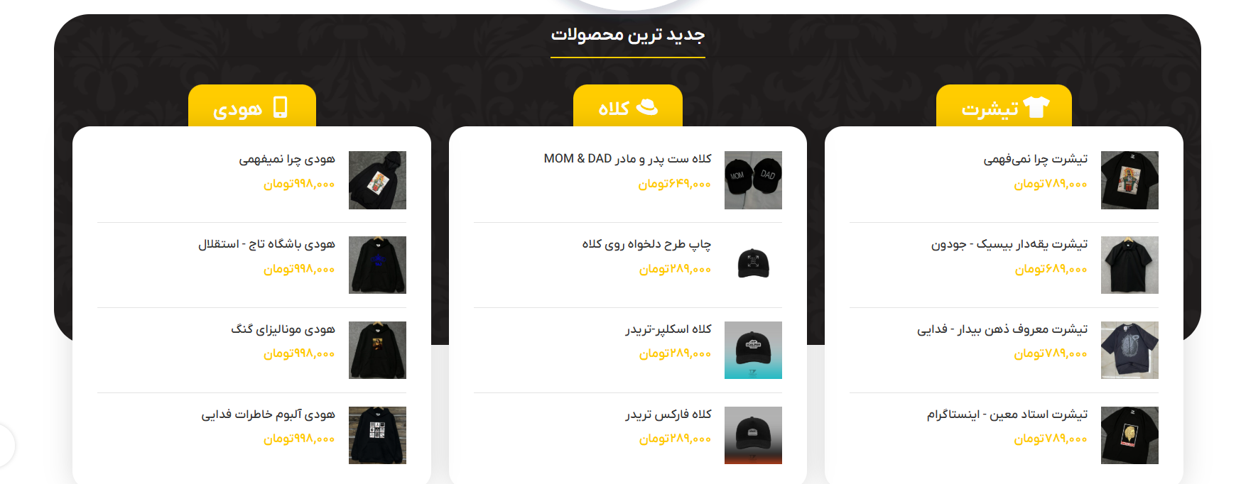 نمایش حرفهای محصولات با گالری تصاویر و جزئیات چاپ و جنس